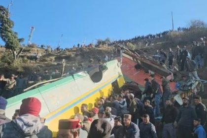 हरिपुरधार में निजी बस 60 मीटर गहरी खाई में गिरी, 12 की मौत, 33 घायल। शिमला-कुपवी मार्ग पर हादसे से हाहाकार, राहत-बचाव जारी।