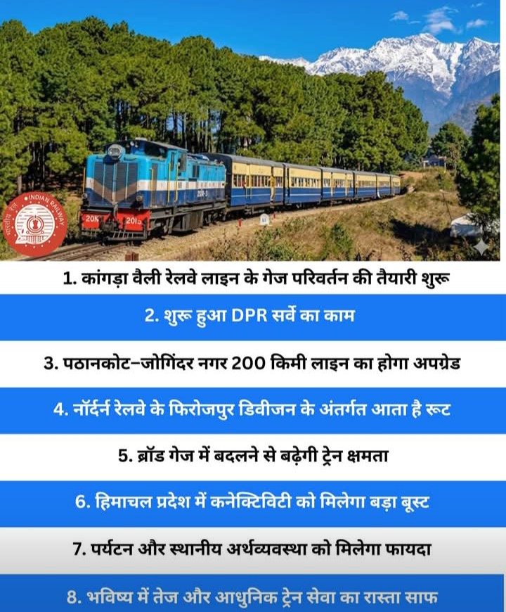 हिमाचल प्रदेश की भौगोलिक चुनौतियों के बीच यदि कोई तंत्र सबसे अधिक जीवनरेखा का कार्य करता है, तो वह है परिवहन। ऐसे में कांगड़ा वैली रेलवे के गेज परिवर्तन हेतु DPR सर्वे का आरंभ केवल एक तकनीकी प्रक्रिया नहीं, बल्कि विकास की दिशा में एक दूरगामी संकेत है।