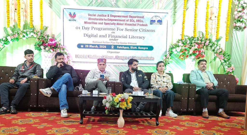 डिजिटल क्रांति के इस दौर में जहां तकनीक ने आम जीवन को सरल बनाया है, वहीं साइबर अपराध और ऑनलाइन धोखाधड़ी की घटनाओं में भी वृद्धि हुई है। विशेषकर वरिष्ठ नागरिकों के लिए यह चुनौती अधिक गंभीर बन जाती है, क्योंकि तकनीकी जानकारी के अभाव में वे आसानी से ठगी का शिकार हो सकते हैं। इसी आवश्यकता को ध्यान में रखते हुए फतेहपुर में सामाजिक न्याय एवं अधिकारिता विभाग के अंतर्गत जिला कल्याण अधिकारी, कांगड़ा द्वारा वरिष्ठ नागरिकों के लिए “डिजिटल और वित्तीय साक्षरता” विषय पर एक विस्तृत जागरूकता कार्यक्रम आयोजित किया गया।
