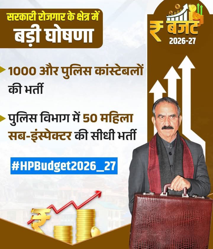 युवाओं को रोजगार, पुलिस में महिलाओं को बढ़ावा — बजट में सुक्खू सरकार का बड़ा फैसला