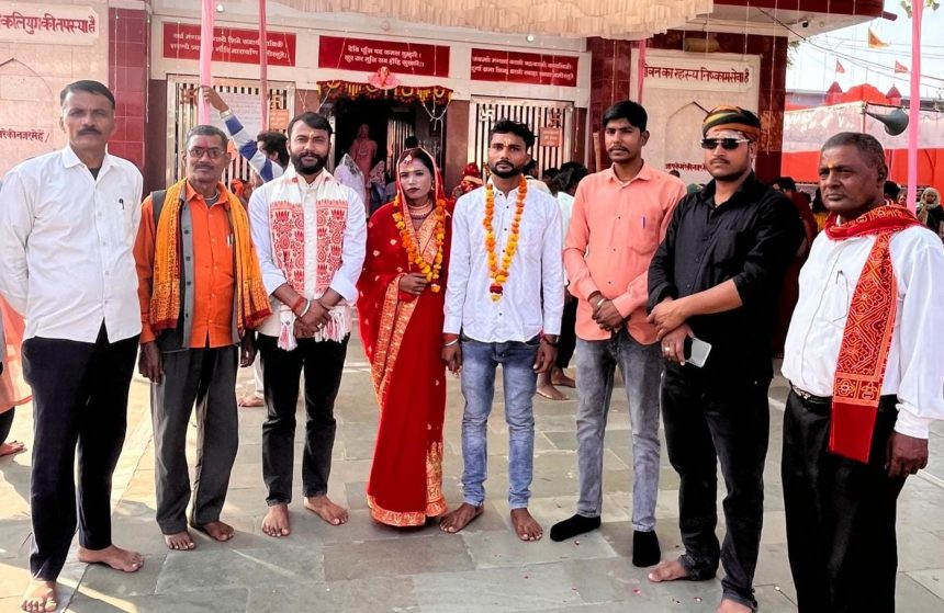 ,सीतापुर महमूदाबाद स्थित संकटा देवी मंदिर में एक विशेष विवाह समारोह आयोजित किया गया, जहां 20 वर्षीय मेराजुन निशा ने सनातन धर्म अपनाकर रूद्राणी कनौजिया नाम धारण किया और 22 वर्षीय रवि कनौजिया के साथ सात फेरे लिए। विवाह पूरे विधि-विधान के साथ सम्पन्न कराया गया।