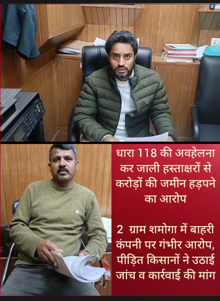 सिरमौर जिले के राजगढ़ क्षेत्र के ग्राम शमोगा में सामने आया भूमि विवाद अब प्रदेश के गरीब किसानों की सुरक्षा और अधिकारों पर बड़ा सवाल खड़ा कर रहा है। पीड़ित परिवारों का आरोप है कि प्रभावशाली तत्वों द्वारा उनकी कृषि भूमि पर अवैध कब्जा करने की कोशिश की जा रही है, जबकि प्रशासन और सरकार इस पूरे मामले में अब तक चुप्पी साधे हुए हैं।पीड़ित किसान खेम राज और शिशु पाल का कहना है कि बाहरी राज्य की कंपनी Wilderness Holiday Pvt. Ltd. द्वारा हिमाचल प्रदेश कास्तकारी एवं भूमि सुधार अधिनियम, 1972 की अवहेलना करते हुए उनकी करीब 3 बीघा जमीन को फर्जी दस्तावेजों और कथित जाली हस्ताक्षरों के जरिए हड़पने का प्रयास किया गया है। इस जमीन की कीमत एक करोड़ रुपये से अधिक बताई जा रही है।किसानों के अनुसार, बिना उनकी जानकारी के पावर ऑफ अटॉर्नी का दुरुपयोग कर भूमि हस्तांतरण की प्रक्रिया शुरू की गई। इतना ही नहीं, पीड़ित परिवार ने कंपनी से जुड़े लोगों पर धमकियां देने और गांव से बाहर करने का दबाव बनाने के आरोप भी लगाए हैं।