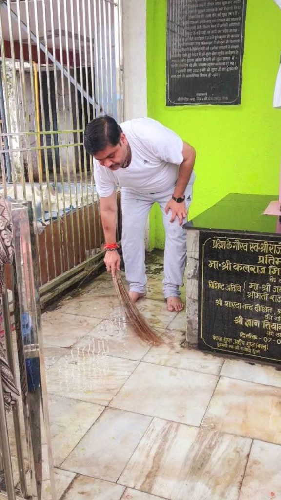 कार्यक्रम के अंतर्गत सेवा पखवाड़ा के तहत स्वच्छता अभियान भी चलाया गया। इसमें सीतापुर के नगर-1 मंडल के शक्ति केंद्र तामसेनगंज स्थित बूथ संख्या 243 पर प्रदेश के गौरव स्वर्गीय राजेंद्र प्रसाद गुप्ता की प्रतिमा की सफाई व माल्यार्पण कर उन्हें याद किया गया।