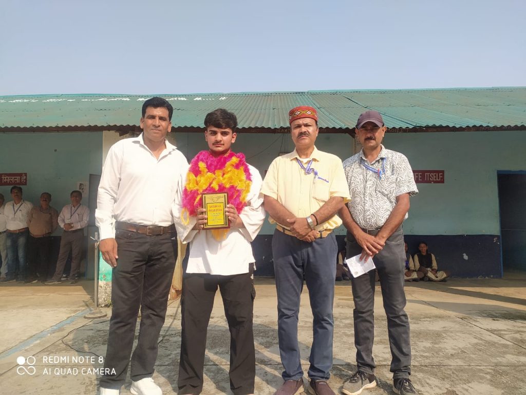 कार्यक्रम के दौरान खंड परियोजना अधिकारी एवं प्रधानाचार्य प्रभात चंद्र पावा ने शौर्य को हार पहनाकर सम्मानित किया और स्मृति चिन्ह भेंट किया।