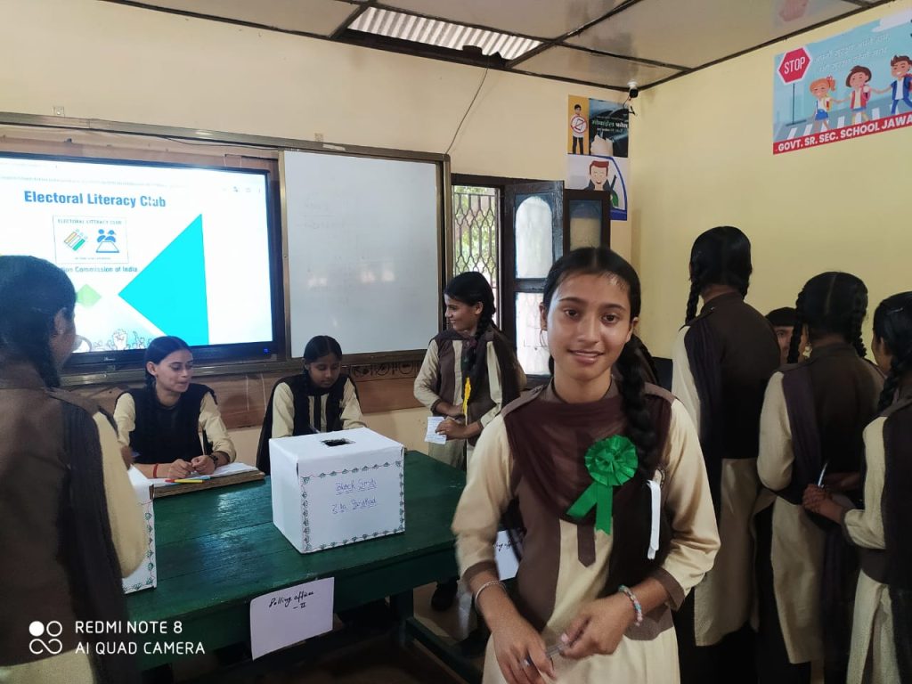 पीएम श्री राजकीय वरिष्ठ माध्यमिक पाठशाला जवाली में ईएलसी की वोटिंग प्रक्रिया में भाग लेते विद्यार्थी।