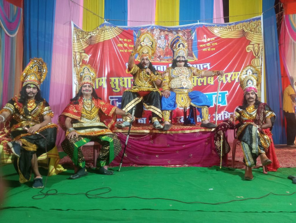 इसके विपरीत रावण दरबार का दृश्य भी भव्यता और ऐश्वर्य से परिपूर्ण रहा। राक्षसराज रावण के शौर्यपूर्ण संवादों और सुनियोजित अभिनय ने मंच पर उसकी दैत्य शक्ति का दर्शन कराया।