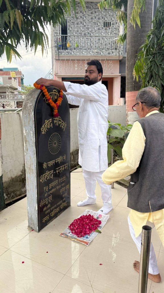 राष्ट्रपिता महात्मा गांधी जी की जयंती के अवसर पर सोमवार को आदर्श नगर पालिका परिषद में श्रद्धांजलि कार्यक्रम का आयोजन किया गया। इस मौके पर नगर पालिका अध्यक्ष आमिर अराफात, सभासदों, पालिका कर्मियों और नगरवासियों ने गांधी जी की प्रतिमा पर माल्यार्पण एवं पुष्प अर्पित कर उन्हें श्रद्धांजलि दी