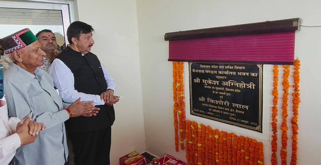 उप मुख्यमंत्री एवं जल शक्ति मंत्री मुकेश अग्निहोत्री ने आज बैजनाथ में जल शक्ति विभाग (JSV) के नवनिर्मित डिवीजनल कार्यालय भवन का लोकार्पण किया। लगभग 1.23 करोड़ रुपये की लागत से निर्मित यह दो मंज़िला आधुनिक भवन विभागीय कार्यों को और अधिक सुचारू बनाने तथा आमजन को सुविधाजनक सेवाएं प्रदान करने में सहायक होगा।