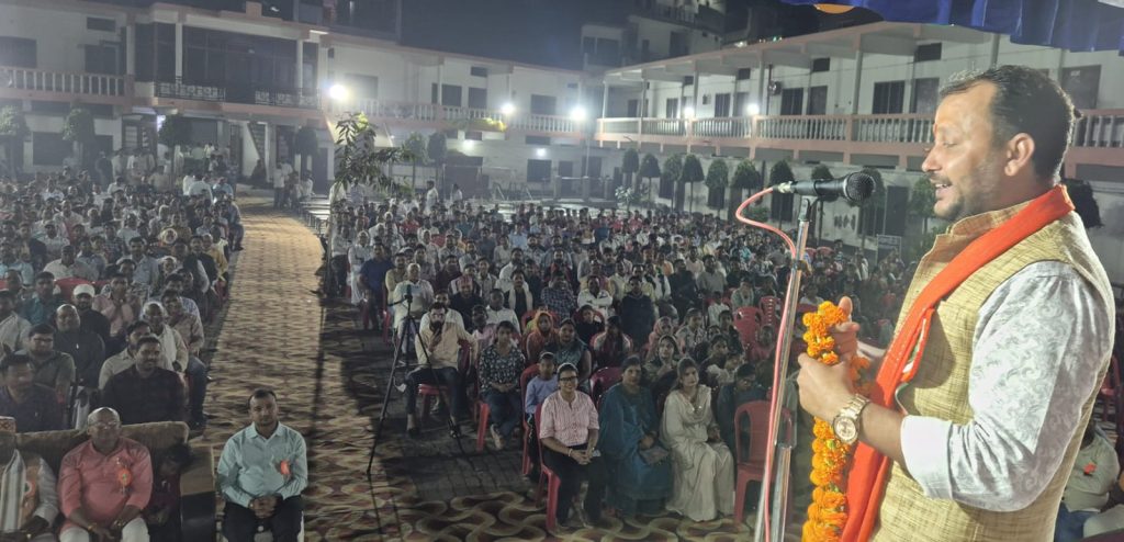 “सरकारी मेहमान बनाकर मत रखो तहखाने में, गाय काटने वालों के अब हाथ काट दो थाने में।” तो सभागार तालियों की गड़गड़ाहट से गूंज उठा।
