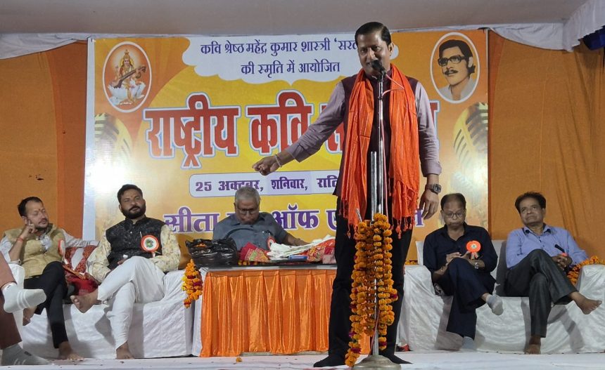 सीता इंटर कॉलेज के विशाल प्रांगण में शनिवार को आयोजित राष्ट्रीय कवि सम्मेलन में ओज, शौर्य और हास्य का अद्भुत संगम देखने को मिला। राष्ट्रवादी कवि महेंद्र कुमार शास्त्री ‘सरल’ के जन्मदिन की स्मृति में आयोजित इस कवि सम्मेलन का शुभारंभ विधानसभा कुर्सी विधायक साकेंद्र प्रताप वर्मा एवं आकाश मौर्य ने दीप प्रज्ज्वलन तथा मां सरस्वती, शास्त्री जी, विद्यालय के संरक्षक स्व. लक्ष्मीकांत रस्तोगी व सीता रस्तोगी की प्रतिमाओं पर माल्यार्पण कर किया।