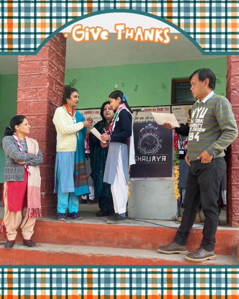 ⭐ उत्कृष्ट प्रदर्शन, शानदार वापसी:-कोटला स्कूल के स्काउट प्रियांशु, आर्यन तथा गाइड्स कनिका और ऋषिका ने 23 से 29 नवंबर तक चले राष्ट्रीय शिविर में शानदार प्रदर्शन किया। रंगोली, परेड, नृत्य, शारीरिक व्यायाम, राज्य प्रदर्शनी और हस्तशिल्प जैसी विभिन्न स्पर्धाओं में इन युवा प्रतिभाओं ने अपनी मौजूदगी मजबूती से दर्ज करवाई।