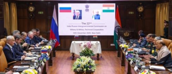 Delhi 04 DEC 2025 रक्षा मंत्री श्री राजनाथ सिंह और रूस के रक्षा मंत्री श्री आंद्रेई बेलौसोव ने 4 दिसंबर, 2025 को नई दिल्ली के मानेकशॉ सेंटर में सैन्य एवं सैन्य-तकनीकी सहयोग पर भारत-रूस अंतर-सरकारी आयोग (आईआरआईजीसी-एमएंडएमटीसी) के 22वें सत्र की सह-अध्यक्षता की। दोनों पक्षों ने दोहराया कि भारत-रूस संबंध गहरे विश्वास, साझा सिद्धांतों और आपसी सम्मान पर आधारित हैं। यह बैठक प्रधानमंत्री श्री नरेन्द्र मोदी और रूस के राष्ट्रपति श्री व्लादिमीर पुतिन के बीच होने वाले 23वें भारत-रूस वार्षिक शिखर सम्मेलन से पहले हुई है।