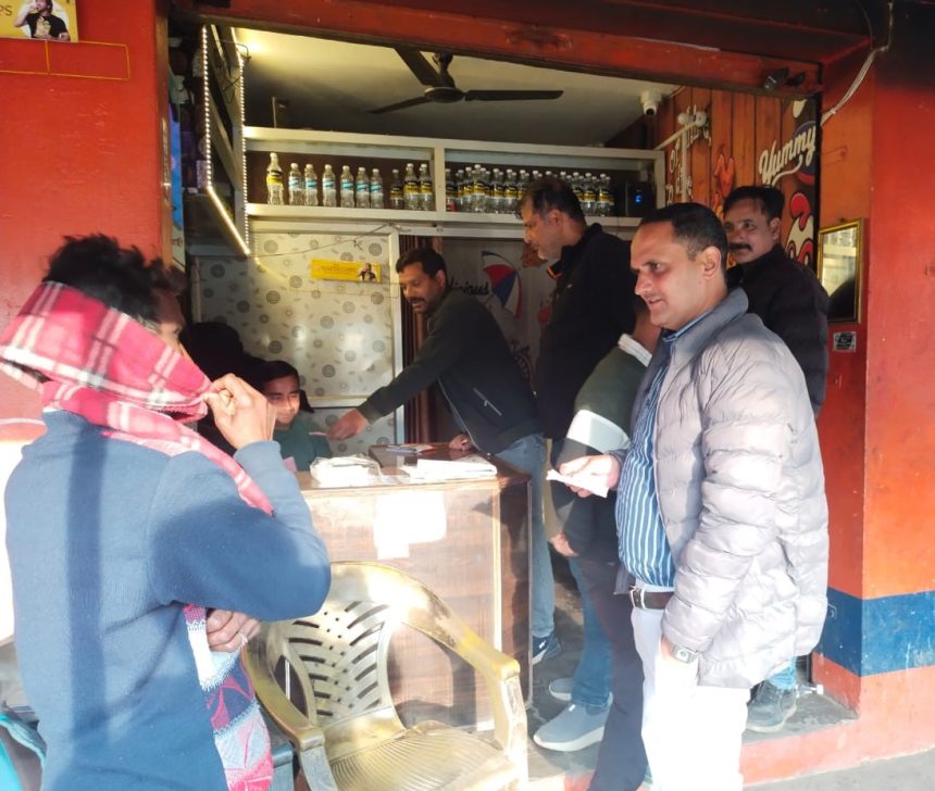 पौंग जलाशय क्षेत्र में अवैध मछली बिक्री के खिलाफ अभियान के दौरान दुकानों व ढाबों का निरीक्षण करती मत्स्य विभाग की टीम, बिना वैध बिल मछली बेचने पर कार्रवाई करते अधिकारी।