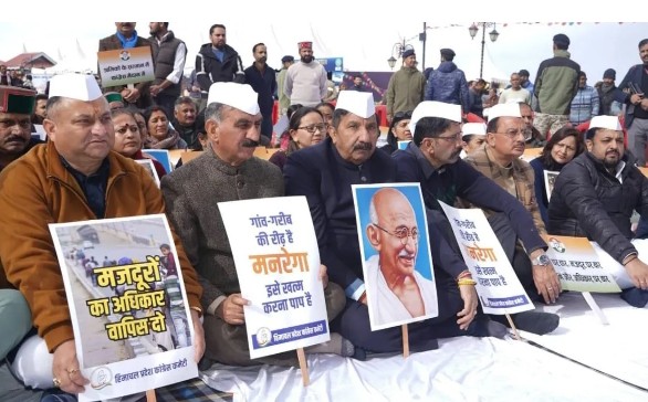 महात्मा गांधी राष्ट्रीय ग्रामीण रोजगार गारंटी अधिनियम (मनरेगा) के नाम में परिवर्तन की चर्चाओं को लेकर हिमाचल प्रदेश की राजनीति गरमा गई है। बुधवार को शिमला में कांग्रेस ने केंद्र सरकार के खिलाफ जोरदार प्रदर्शन किया और आरोप लगाया कि भाजपा सरकार महात्मा गांधी के नाम और विचारधारा को योजनाबद्ध तरीके से हाशिये पर धकेलने का प्रयास कर रही है।