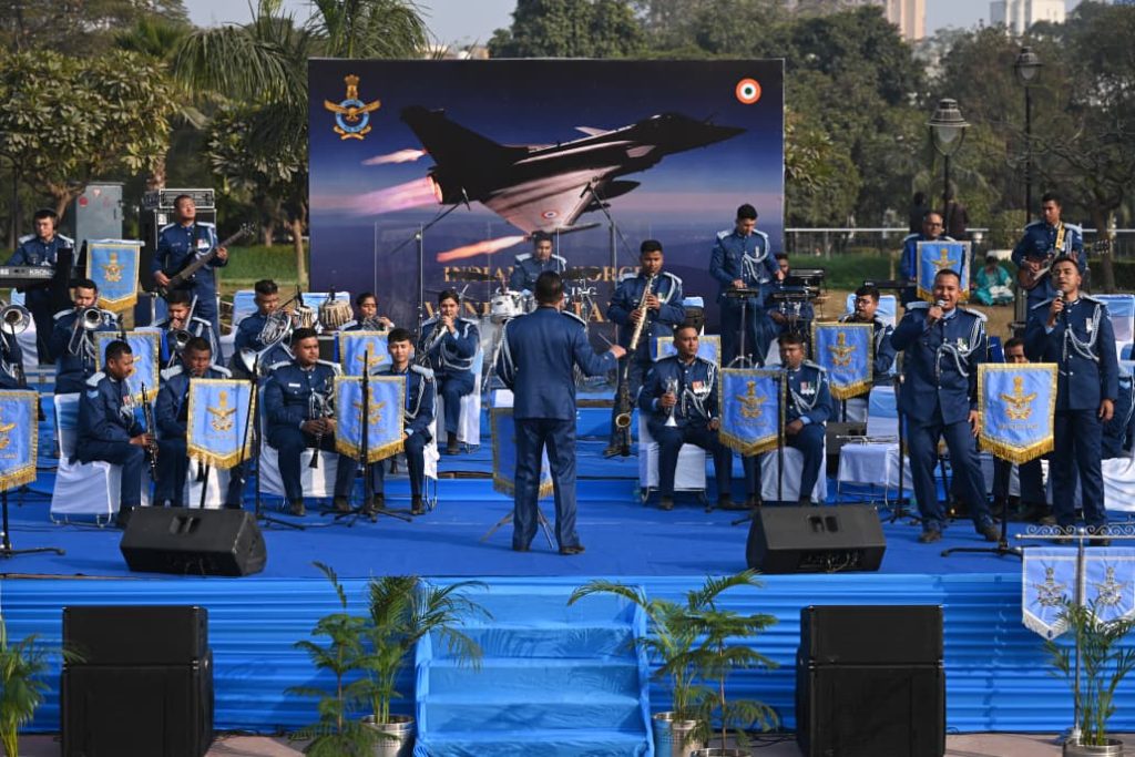 इस विशेष कार्यक्रम में ब्रास, बांसुरी, स्ट्रिंग तथा इलेक्ट्रॉनिक वाद्ययंत्रों के माध्यम से कुल 11 मनमोहक धुनें प्रस्तुत की गईं। प्रस्तुति के मुख्य आकर्षण राष्ट्रीय गीत ‘वंदे मातरम’ तथा प्रेरणादायी गीत ‘सिंदूर’ रहे। ‘सिंदूर’ गीत को हालिया ऑपरेशन सिंदूर के दौरान भारतीय सशस्त्र बलों की वीरता, साहस और बलिदान को स्मरण करने के उद्देश्य से विशेष रूप से तैयार किया गया है, जिसने उपस्थित दर्शकों को भावविभोर कर दिया गीत भारतीय संस्कृति की आत्मा रहा है और यह सदियों से समाज को जोड़ने तथा प्रेरणा देने का सशक्म ध्यम रहा है। सैन्य परंपराओं में भी संगीत का विशेष स्थान है, जो अनुशासन, एकता और शौर्य का संचार करता है। 1944 में स्थापित भारतीय वायु सेना बैंड भारतीय और पाश्चात्य संगीत की उत्कृष्ट प्रस्तुतियों के माध्यम से देश की सैन्य सांस्कृतिक विरासत का एक सशक्त स्तंभ रहा है।