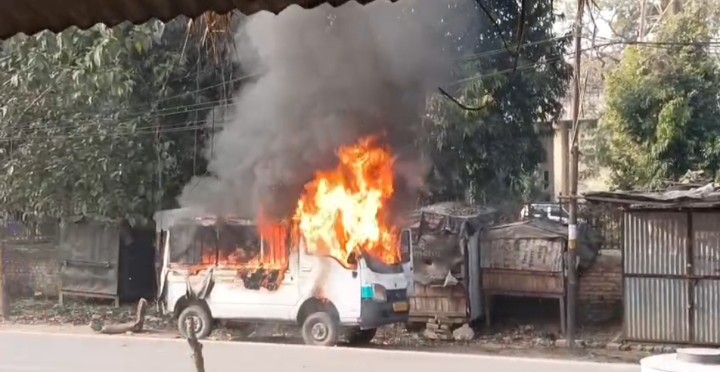 स्थानीय लोगों ने तत्काल फायर ब्रिगेड को सूचना दी, जिसके बाद दमकल कर्मियों ने मौके पर पहुंचकर आग पर काबू पाया। गनीमत रही कि इस घटना में किसी प्रकार की जनहानि नहीं हुई। हालांकि आग की चपेट में आने से मैजिक वाहन पूरी तरह से जलकर क्षतिग्रस्त हो गया।