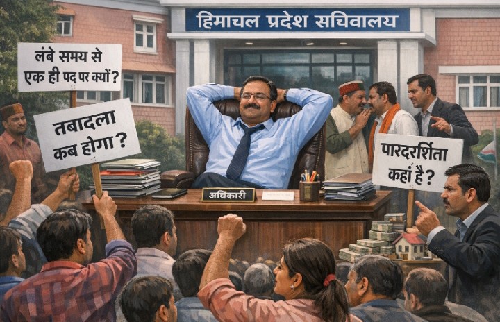 जानकारी के अनुसार, कई बार तबादले की चर्चाएं होने के बावजूद अधिकारी अब तक धर्मशाला से अन्य स्थान पर स्थानांतरित नहीं हुए। स्थानीय लोगों में चर्चा है कि आखिर किस राजनीतिक संरक्षण के चलते यह अधिकारी वर्षों से एक ही स्थान पर कार्यरत है। आमजन यह भी सवाल उठा रहे हैं कि कहीं यह मामला जमीनों की खरीद-फरोख्त से जुड़ा तो नहीं, क्योंकि धर्मशाला विश्व मानचित्र पर अपनी अलग पहचान रखता है और यहां की जमीनों में नेताओं व रसूखदारों की खास दिलचस्पी देखी जाती रही है।